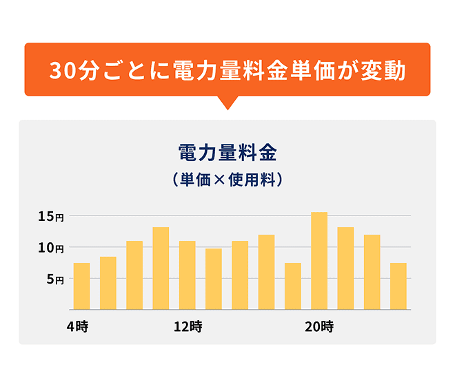 電力市場の価格に連動して、30分ごとに電気料金が変動するプランです。